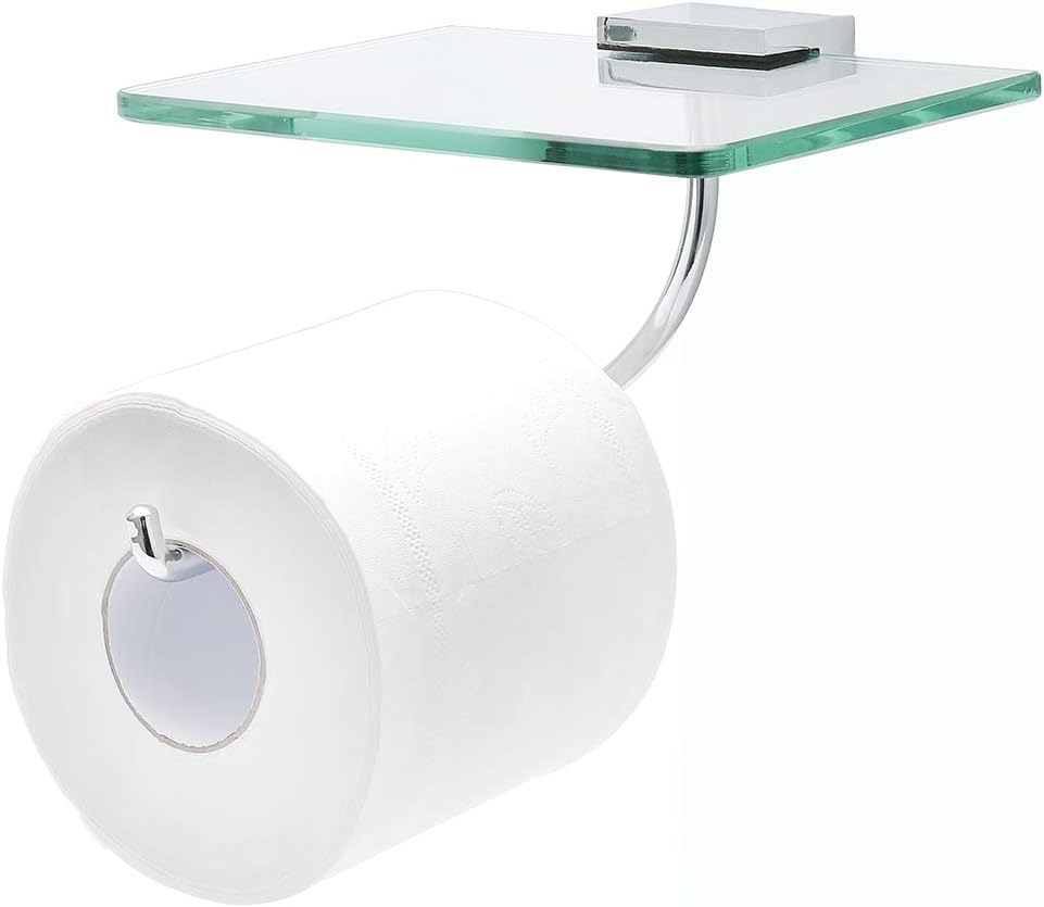 The wall mounted toilet paper holder is also available in polished finish. Shop for toilet paper holder online at target. Prestige regal collection two post toilet tissue holder with glass shelfour toilet paper holder will elegantly features: Dual function solve the needs of hanging and placing items at the same time, additional shelf is a perfect place for free up our hands. Wall mounted toilet tissue paper holder with shelf gold brass.